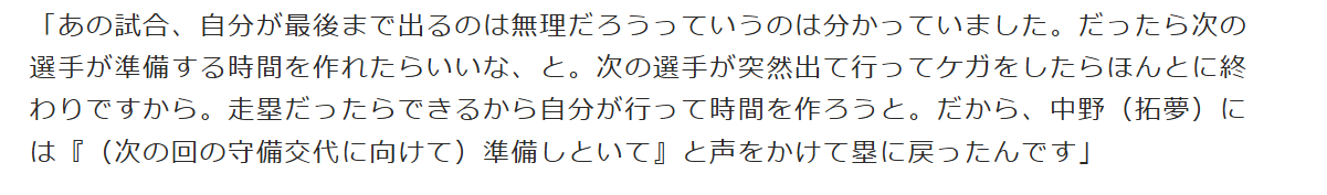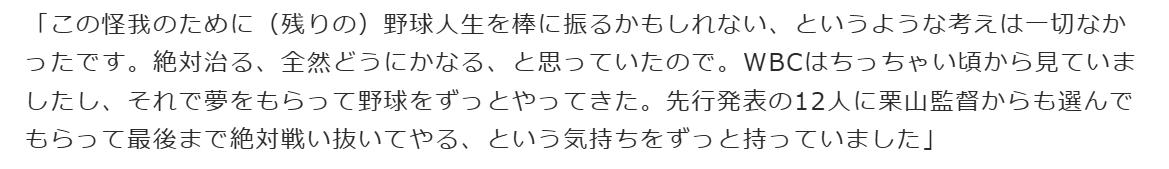 野球選手でもけがをして試合に出場している選手がいるわけだけど、その野球選手と自分は違うかなと思った。